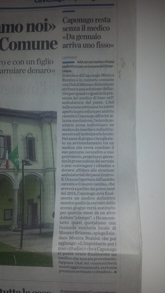 Rassegna Stampa – Caponago – I Novembre Postato il 1 novembre 20143 novembre 2014 di buzzinimonica Caponago resta senza il medico, da Gennaio arriva uno fisso Riscaldamento Obsoleto si ritenta di cambiarlo Due disoccupate ringraziano il Comune Condividi: Fai clic per condividere su X (Si apre in una nuova finestra) X Fai clic per condividere su Facebook (Si apre in una nuova finestra) Facebook Mi piace Caricamento... Pubblicato da buzzinimonica Vedi tutti gli articoli di buzzinimonica