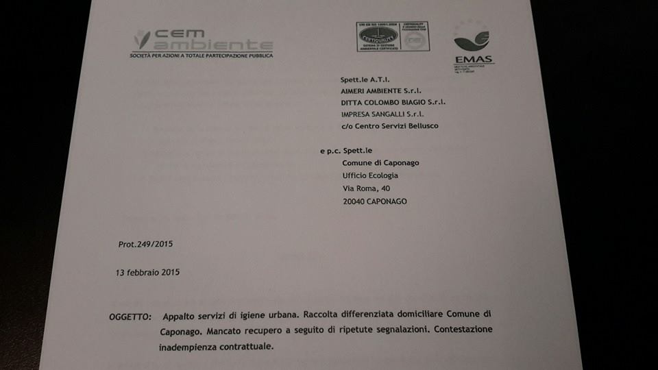 Dopo la mia lettera di formale contestazione e protesta del 11/2/2015 qui la comunicazione in data odierna di Cem.