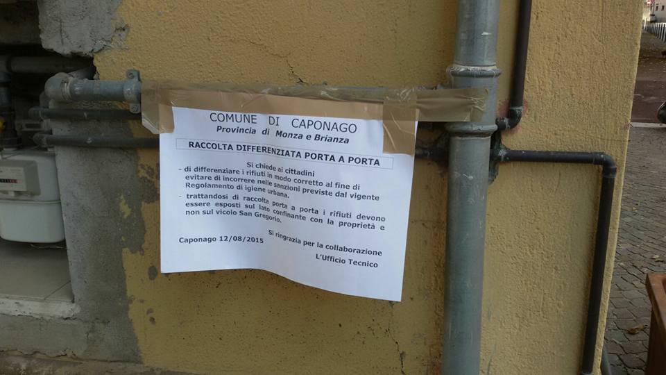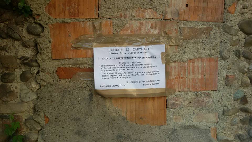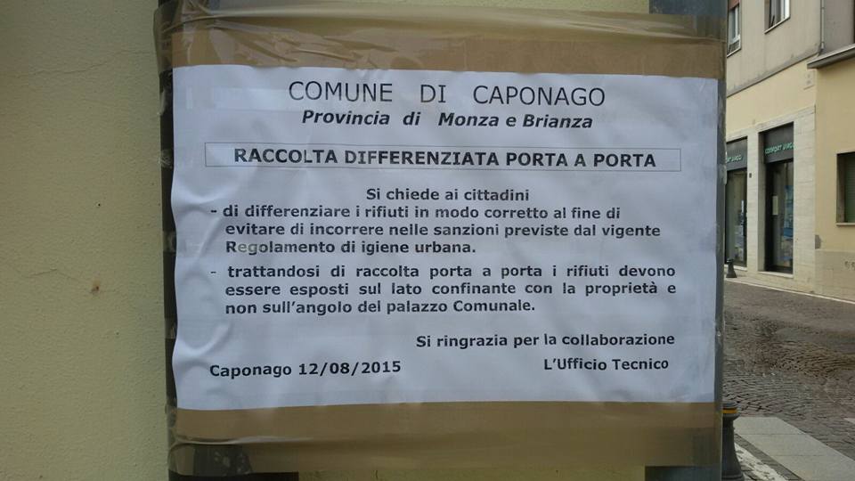 Buon pomeriggio Caponago, oggi ho sentito la vicesindaco vhe mi sostituusce e che mi invia qualche foto dei cartelli che l ‘Ut ha posizionato nei luoghi critici, dove la raccolta non è conforme. ..non ci fermeremo qui…per pochi incivili TUTTI devono avere luoghi poco puliti.