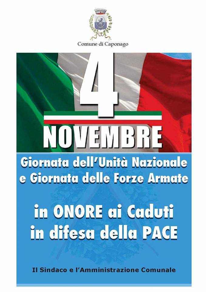 4 Novembre Giornata dell’Unità Nazionale e delle Forse Armate Postato il 4 novembre 20152 novembre 2015 di buzzinimonica Condividi: Fai clic per condividere su X (Si apre in una nuova finestra) X Fai clic per condividere su Facebook (Si apre in una nuova finestra) Facebook Mi piace Caricamento... Pubblicato da buzzinimonica Vedi tutti gli articoli di buzzinimonica